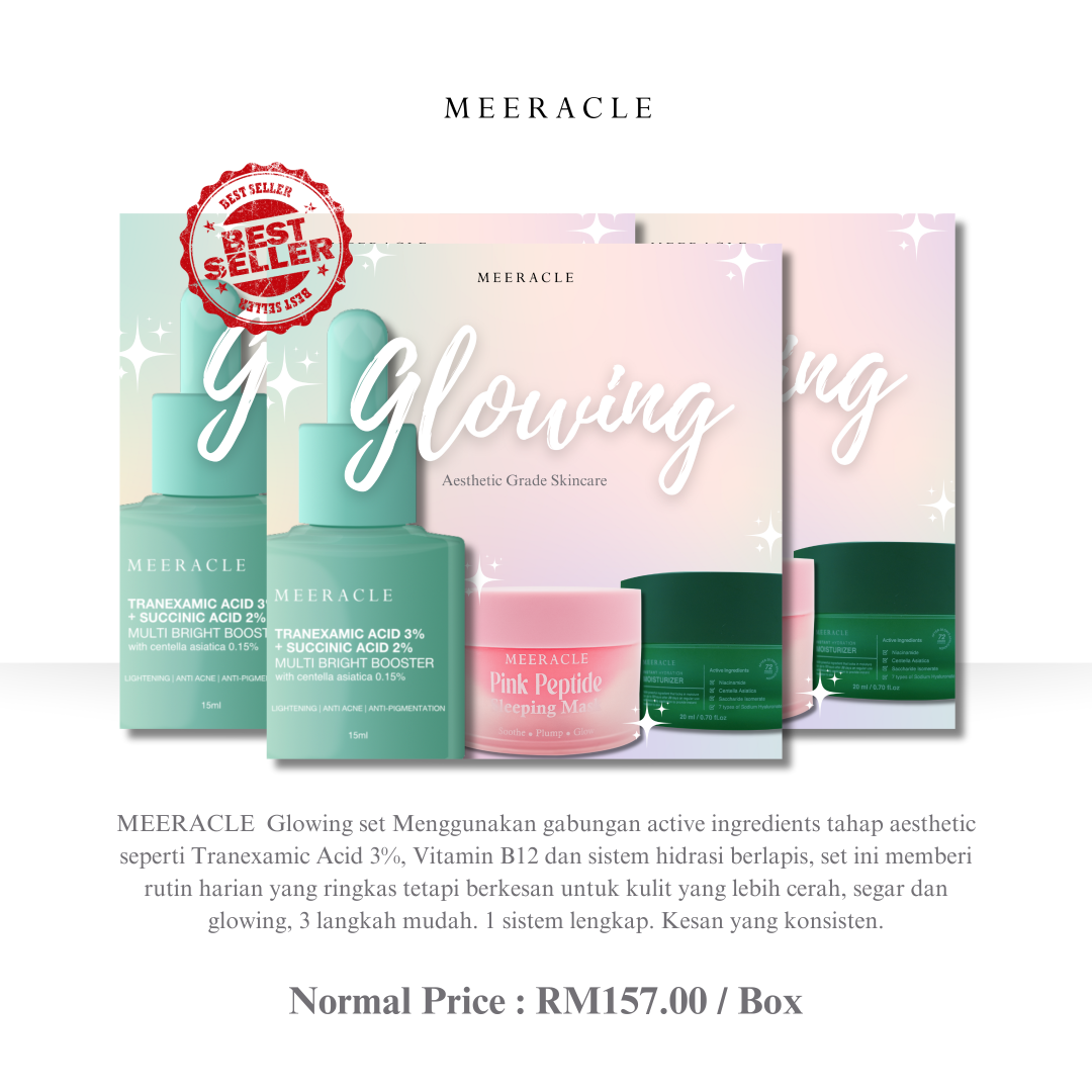 MEERACLE Aesthetic Glow System ialah set penjagaan kulit lengkap yang diinspirasikan daripada rawatan aesthetic, direka untuk membantu memulihkan kulit kusam, tona tidak sekata dan kulit yang kelihatan penat.